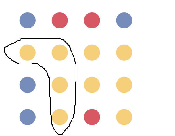 위의 경우는 인접한 4개의 점이 인접하고, 모든 칸의 색이 노란색이다.