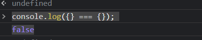 {}, {}라는 두 객체를 생성하고, 빈 객체는 각자 다른 주소를 바라보므로 이는 엄연히 다른 객체이다.