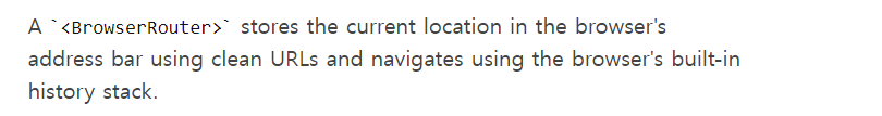 공식문서에서는 BroswerRouter가 현재 브라우저의 위치를 받아사 브라우저의 history스택을 이용해 이동한다고 한다.