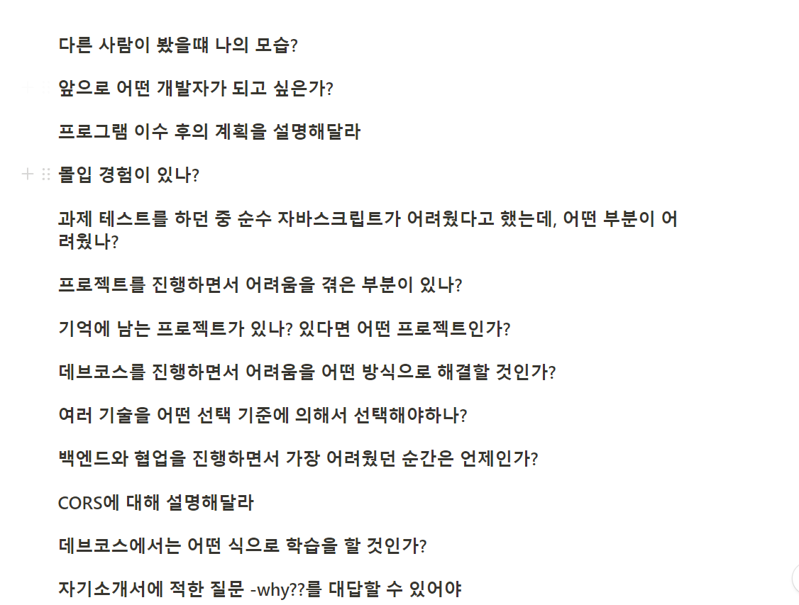 면접은 다른 수강 후기를 찾아보니 낸 서류에서 많은 질문이 나온다~ 라는 글을 많이 보아서,